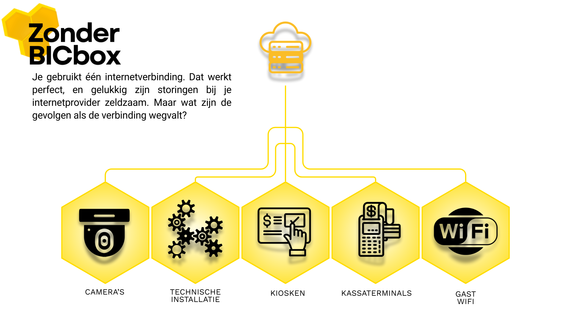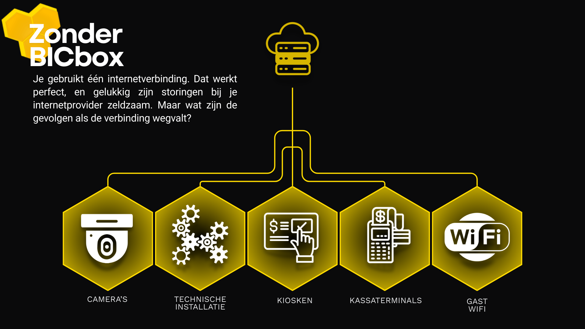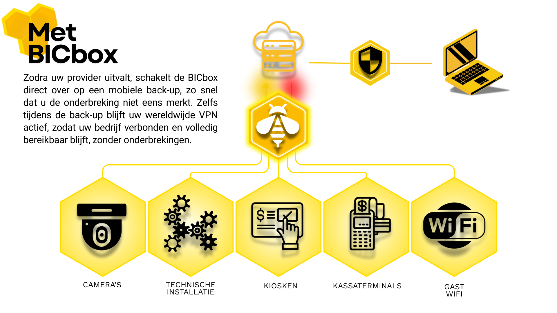 Toegang tot alle faciliteiten die je gewend bent, veilig uit te breiden naar elke locatie met de BICbox. De BICbox zorgt ervoor dat je altijd online bent.